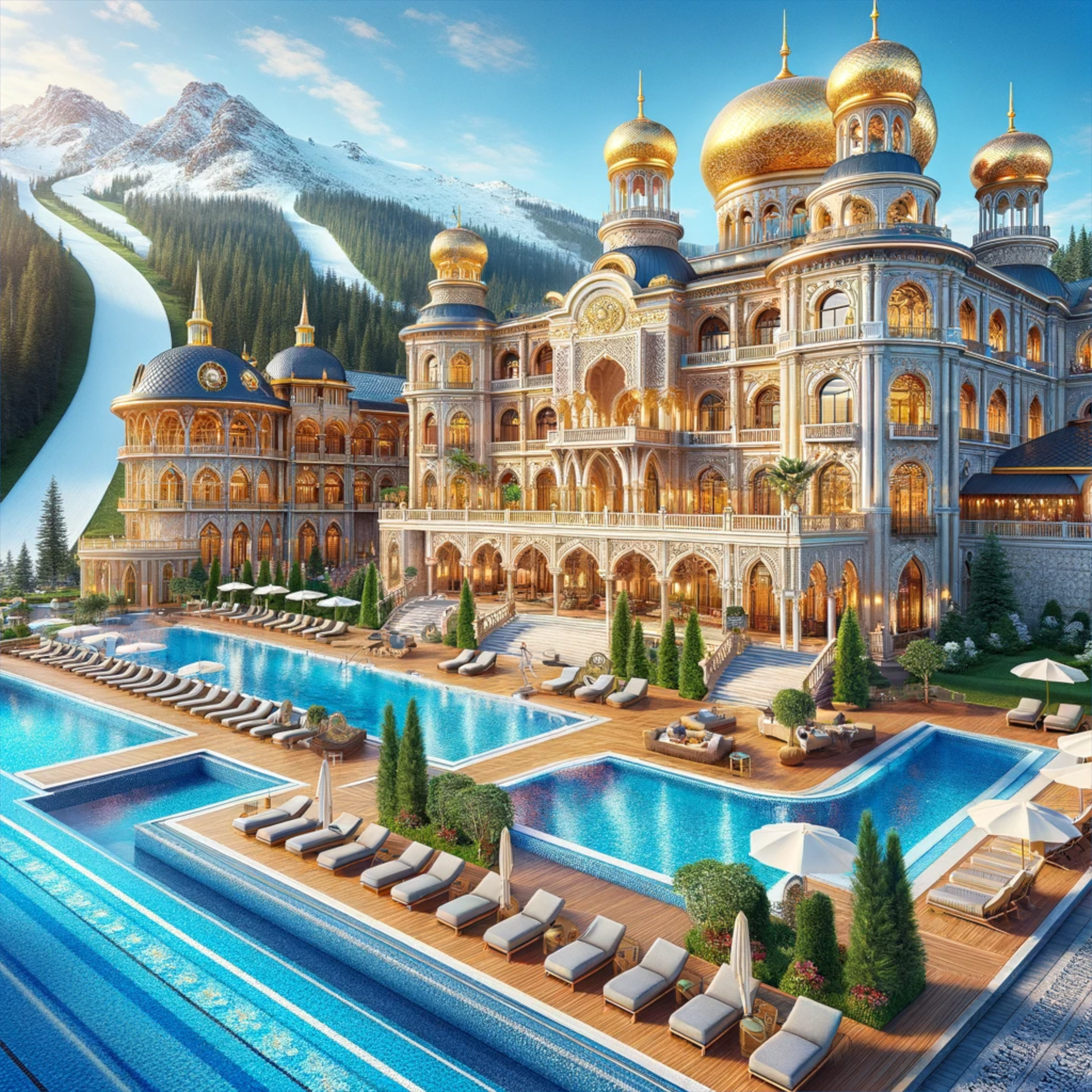 Palace 5 étoile avec piscine et piste de ski